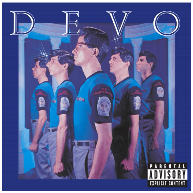 The name “Devo” is based on Devolution and the idea that “instead of continuing to evolve, mankind had begun to regress, as evidenced by the dysfunction and herd mentality of American Society” (from Devo Bio)